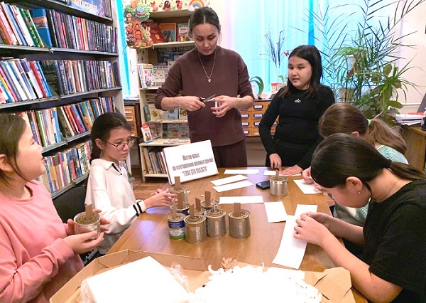 С целью патриотического воспитания молодого поколения в Новкус-Артезианской сельской библиотеке провели мастер-класс по изготовлению окопных свечей «Тепло для солдата».