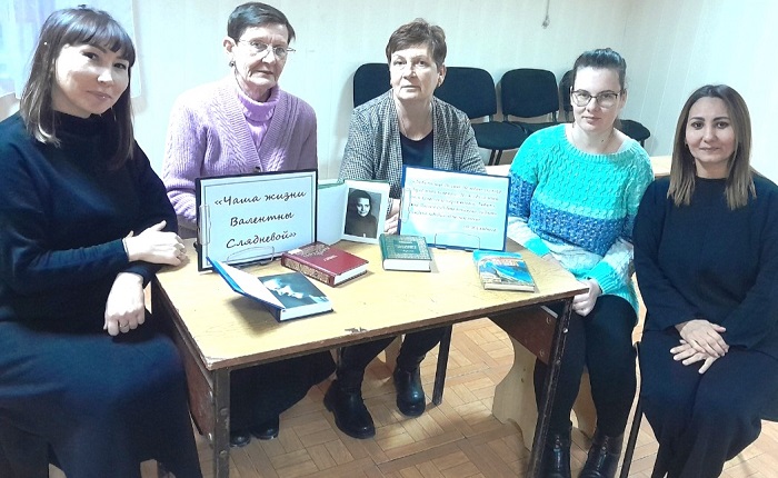 К юбилейной дате в библиотеках ЦБС были проведены: громкие чтения «След жизни» (Новкус-Артезианская сельская библиотека), литературная гостиная «Я – дочь земли, я всё в стихах сказала» (Затеречная поселковая библиотека), литературная гостиная «Я собираю колоски» (Ачикулакская сельская библиотека), литературная гостиная «Судьба в поэзии: Валентина Сляднева» (Андрей-Курганская сельская библиотека), краеведческая гостиная «Прекрасная поэзия жизни» (Нефтекумская городская библиотека), поэтический марафон «Слядневские чтения» (Зункарская сельская библиотека), музыкально – поэтический час «Панорама литературной жизни Валентины Слядневой»(Кара-Тюбинская сельская библиотека), час поэзии «Слядневские чтения» (Абрам-Тюбинская сельская библиотека).