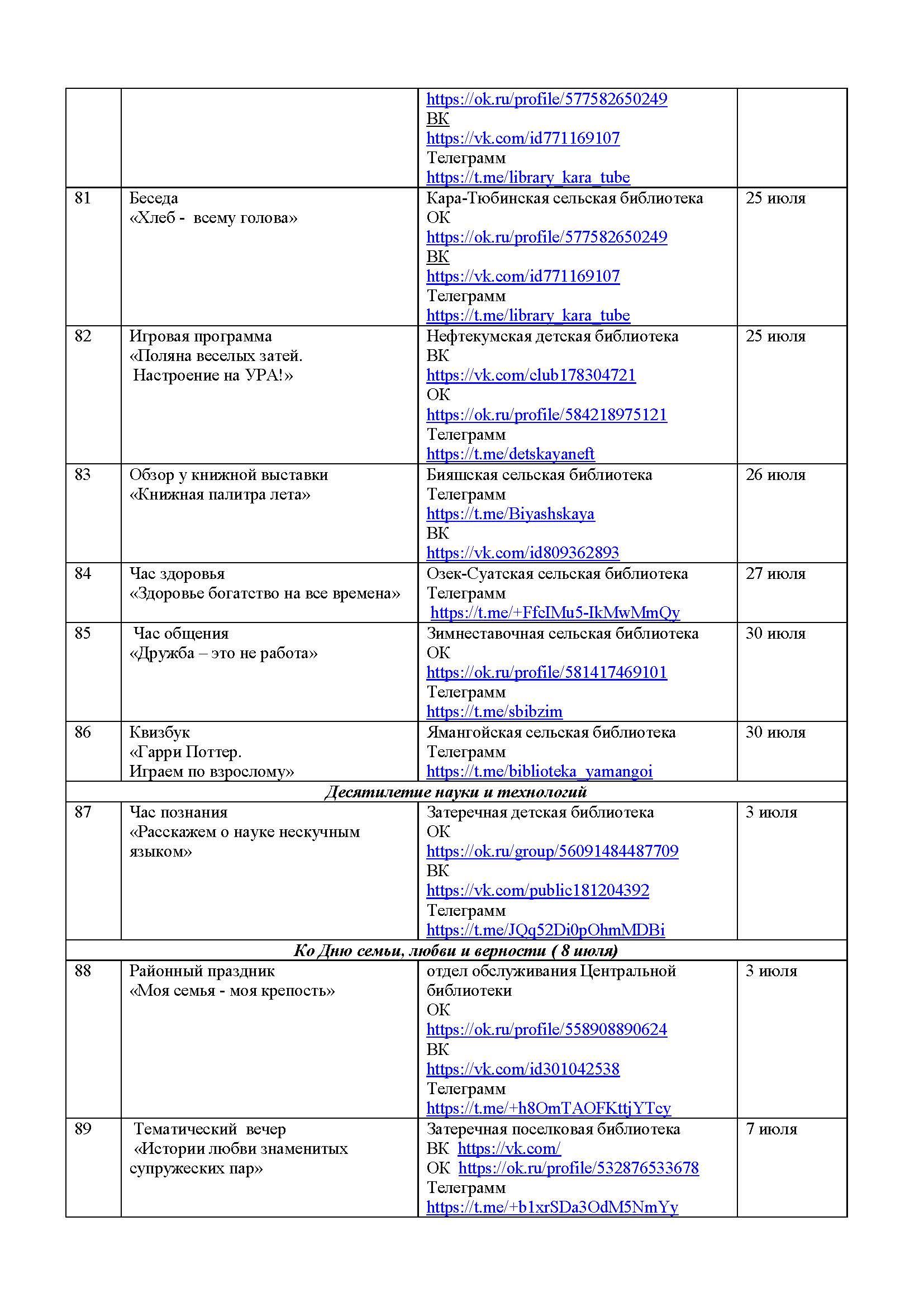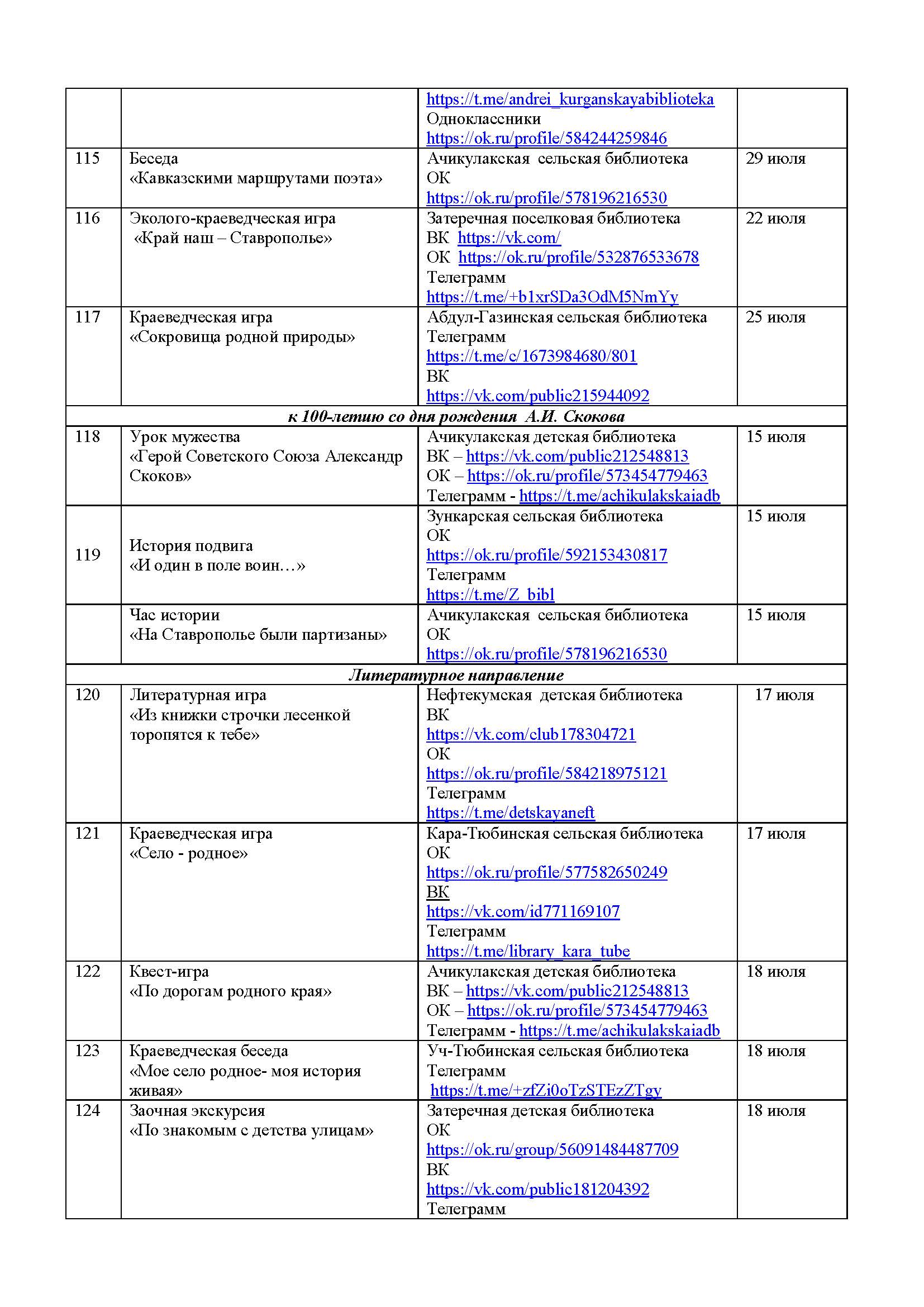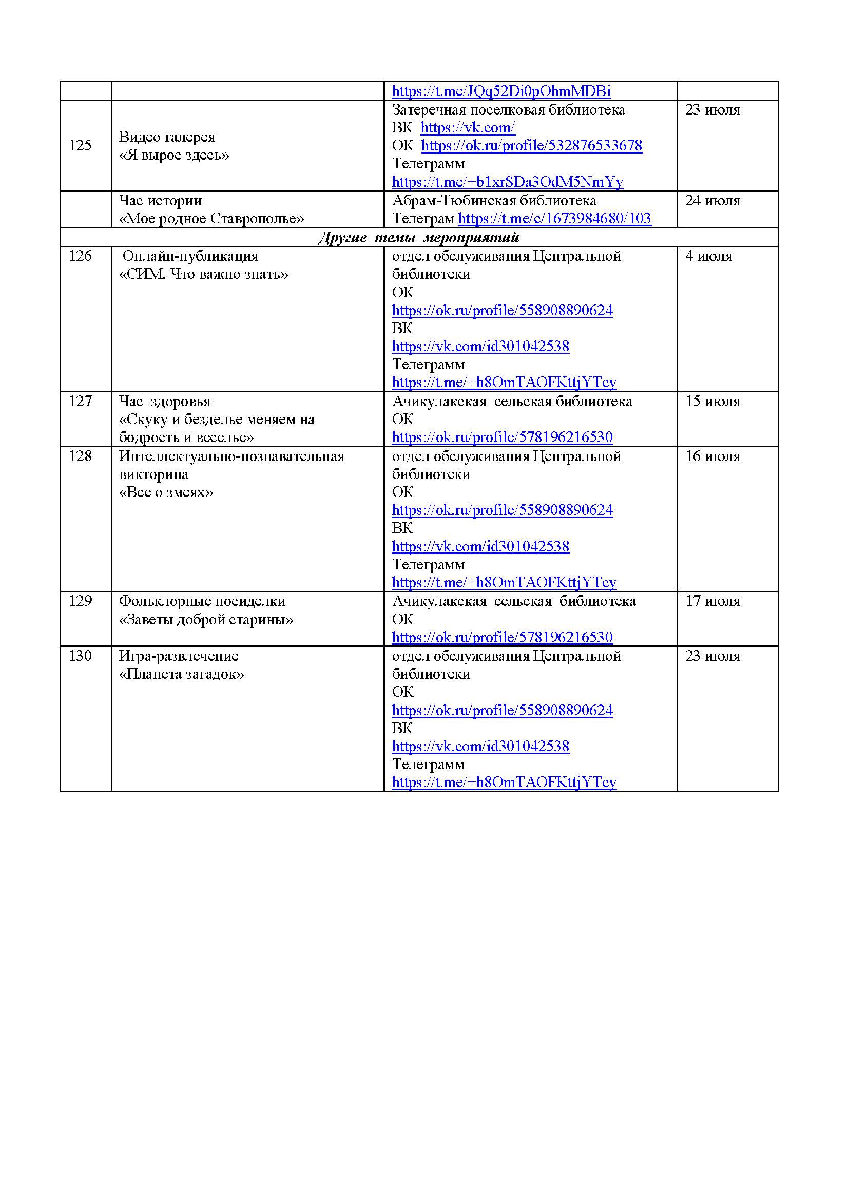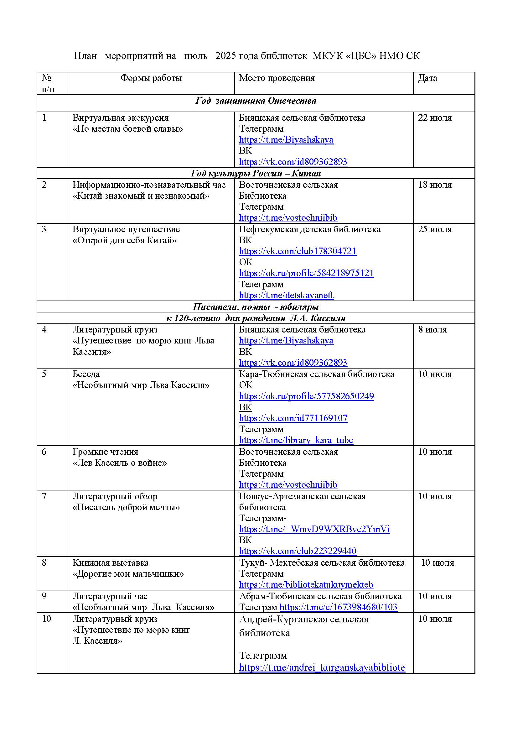 План мероприятий на июль 2025 года библиотек МКУК ЦБС НМО СК