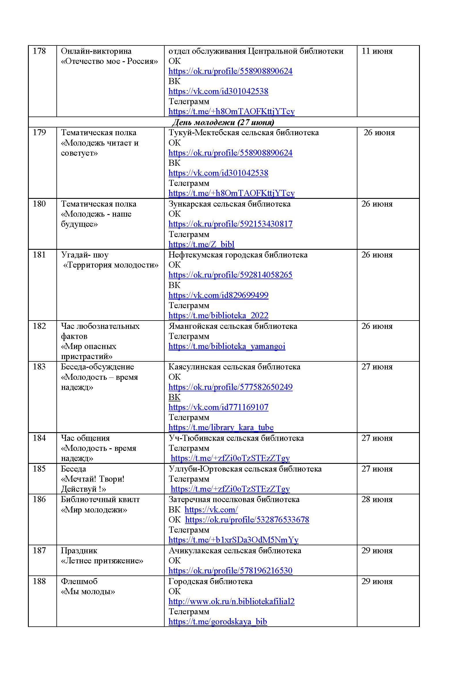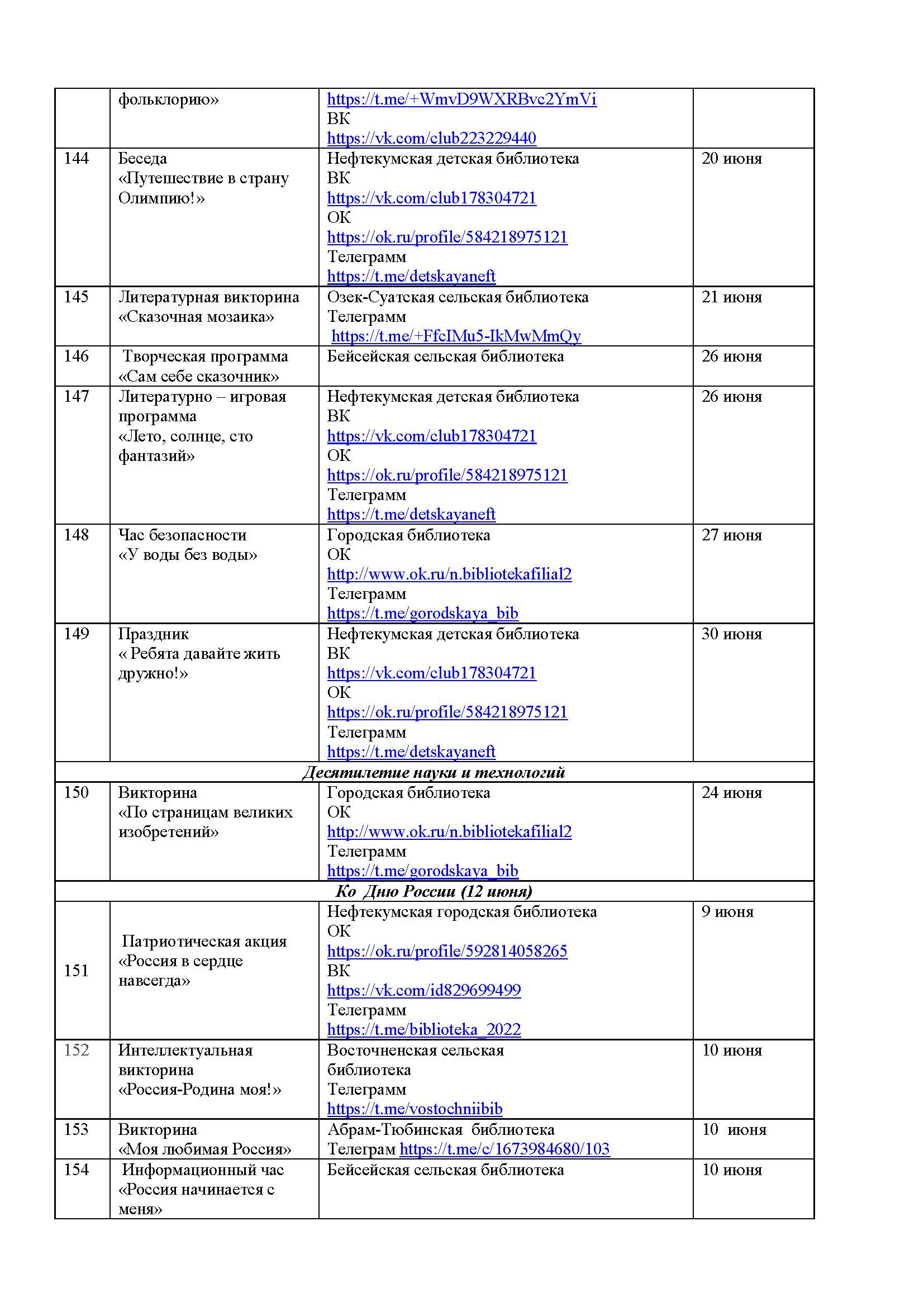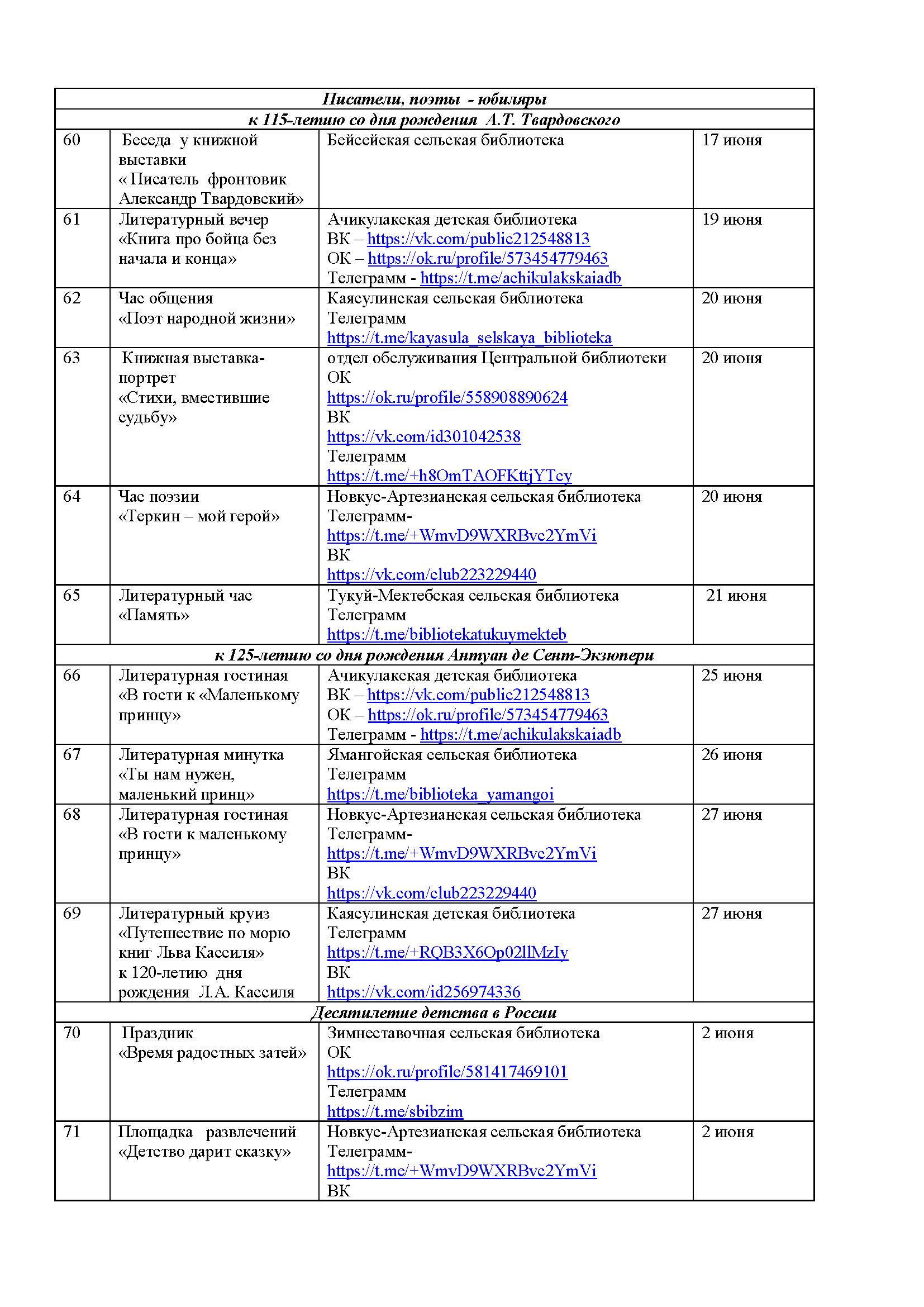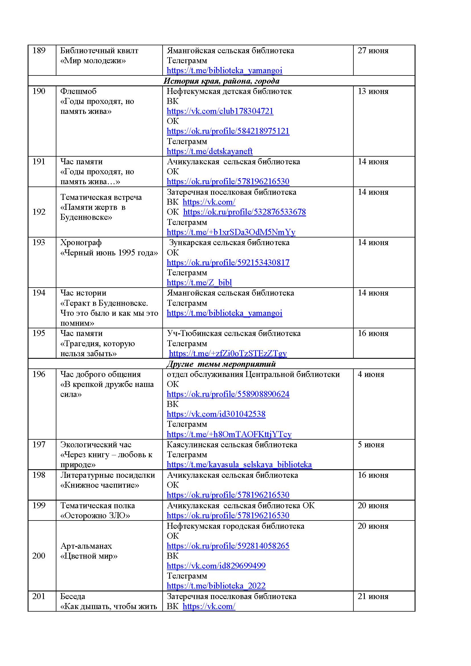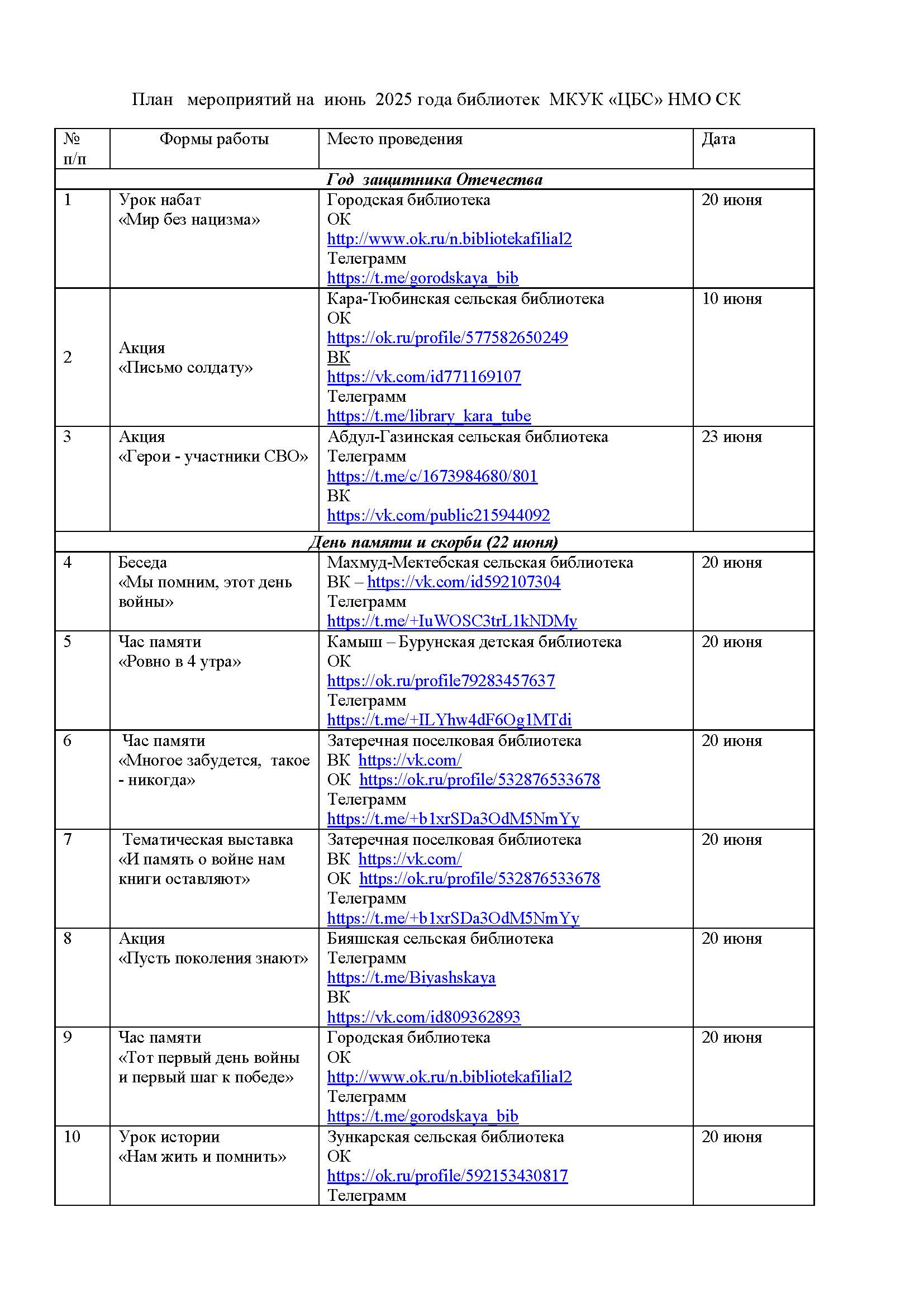 План мероприятий на июнь 2025 года библиотек МКУК ЦБС НМО СК