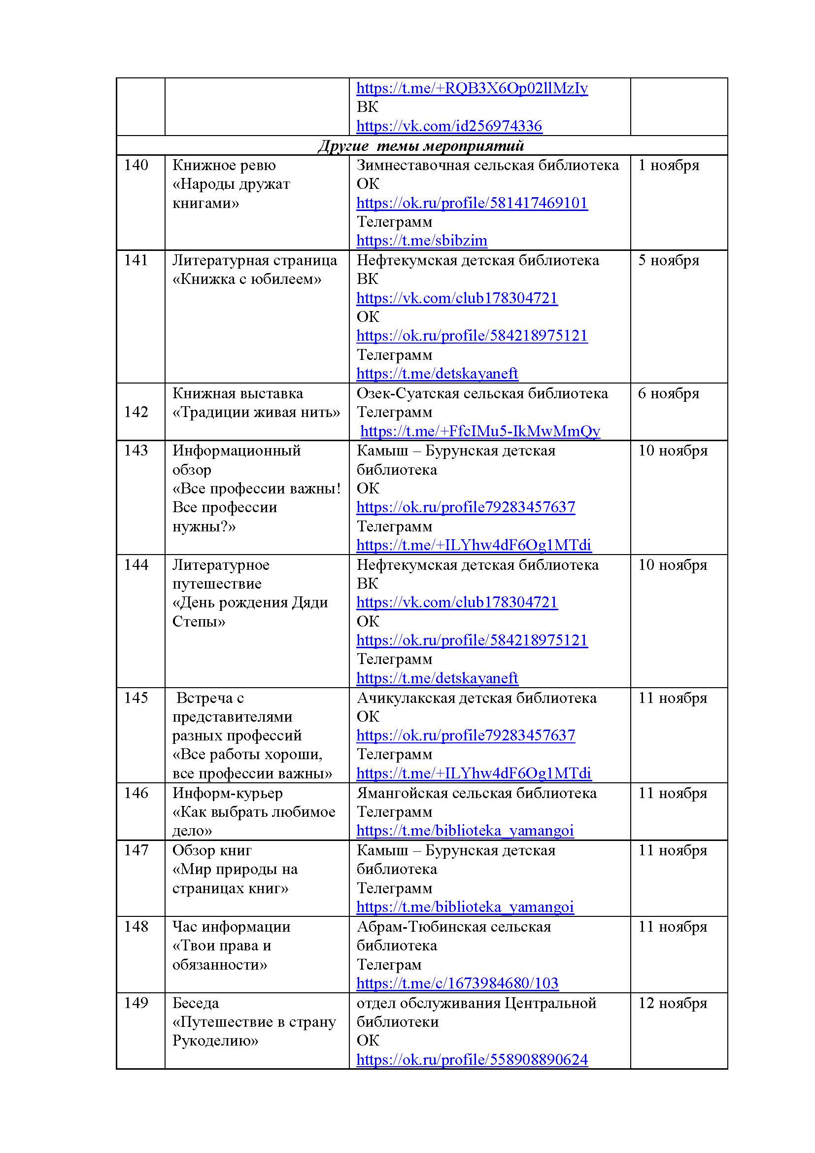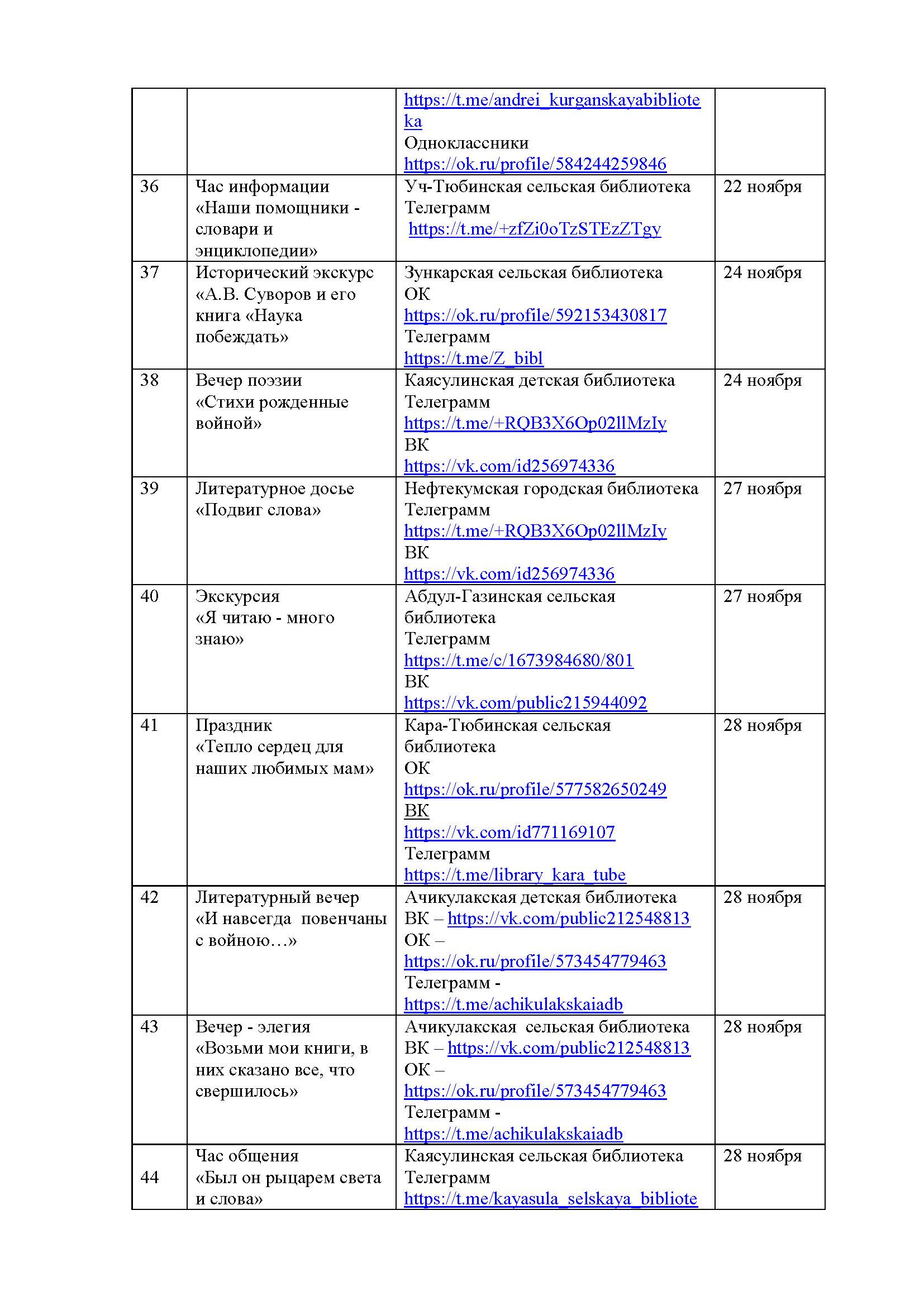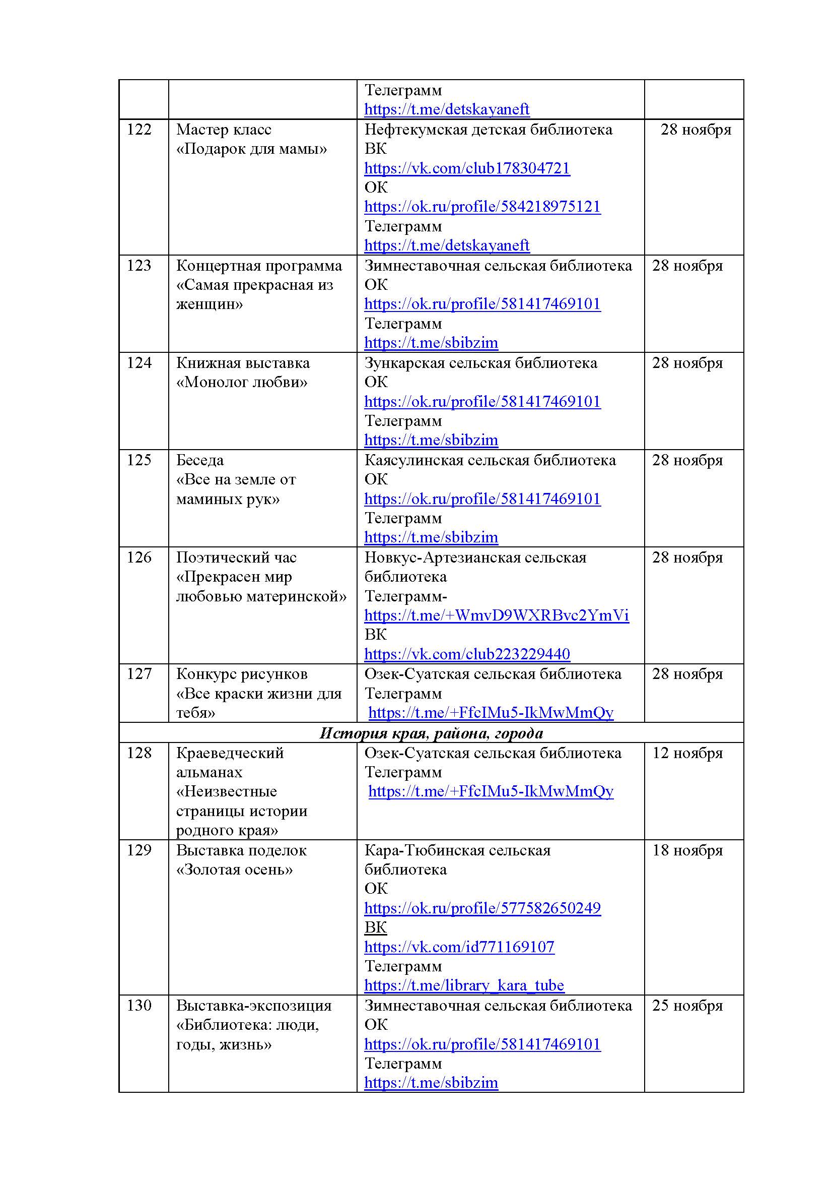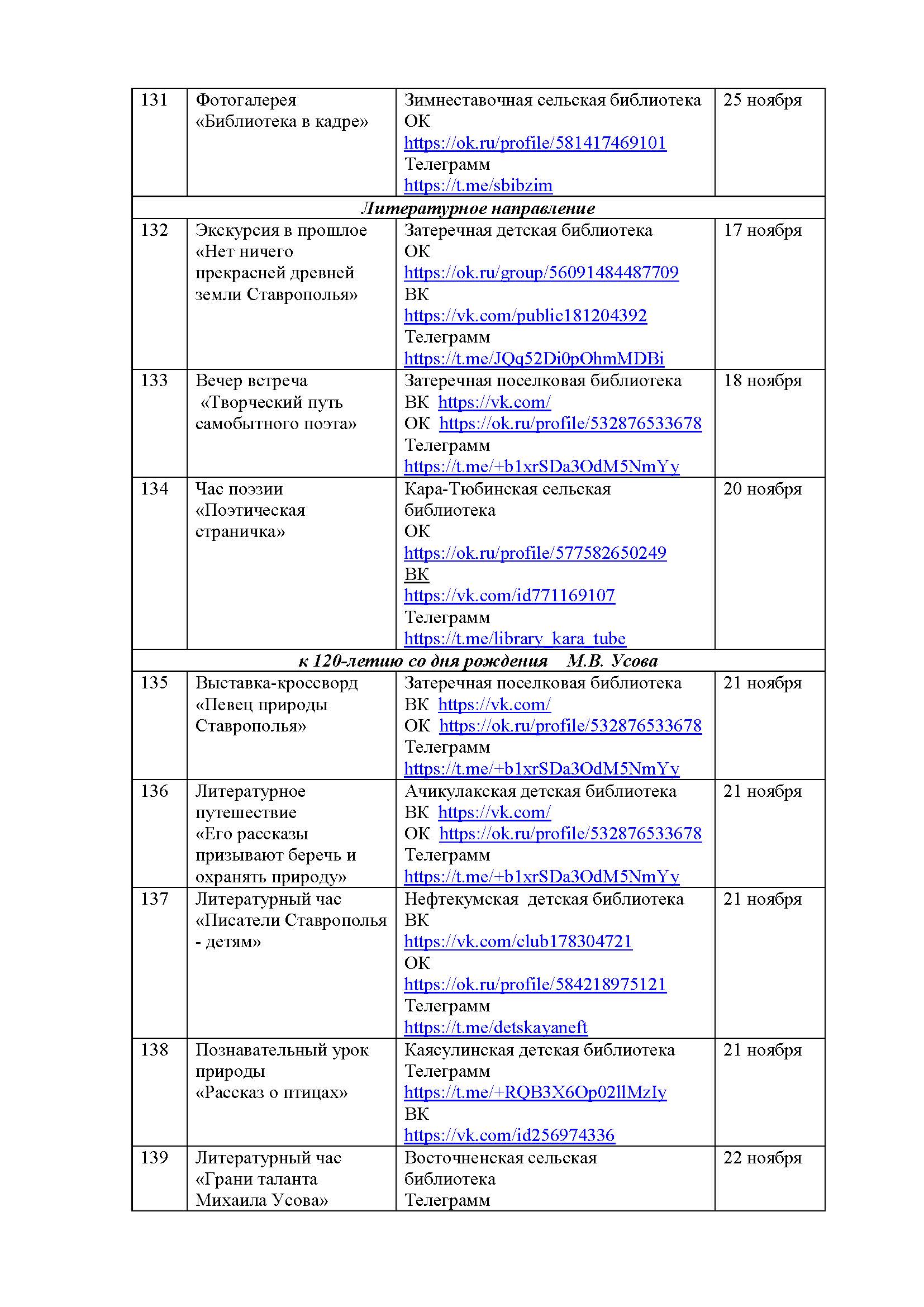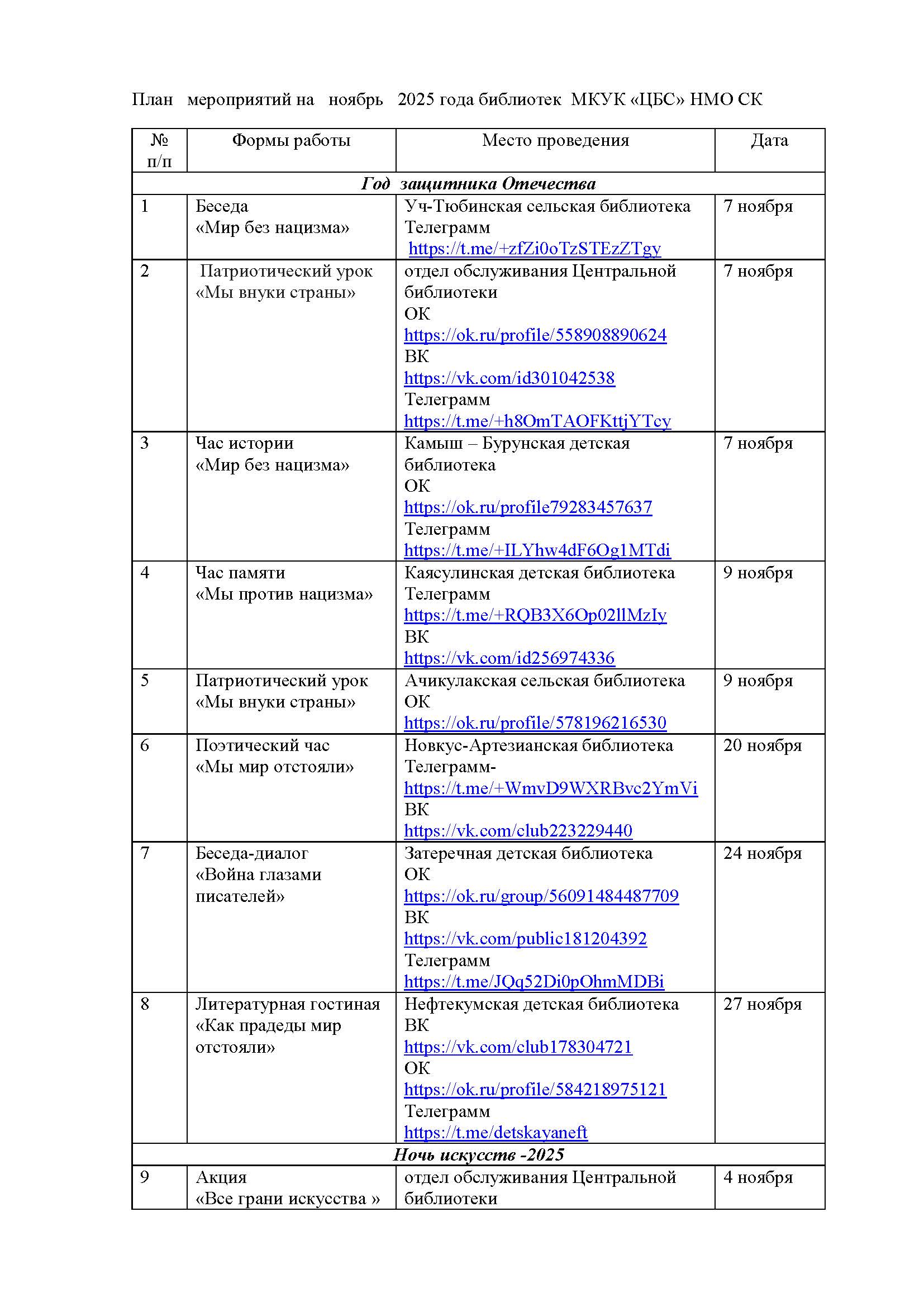План мероприятий на ноябрь 2025 года библиотек МКУК ЦБС НМО СК