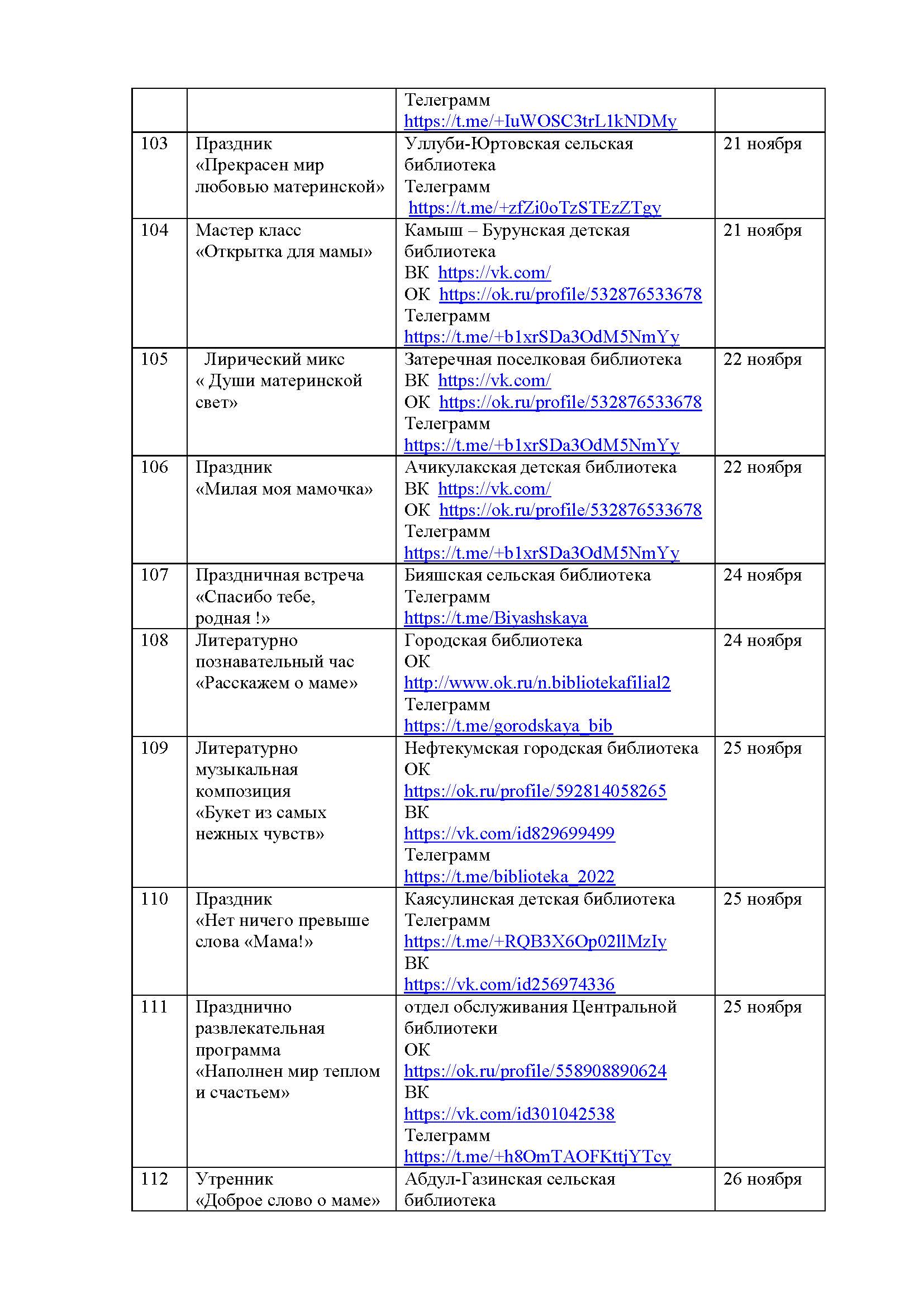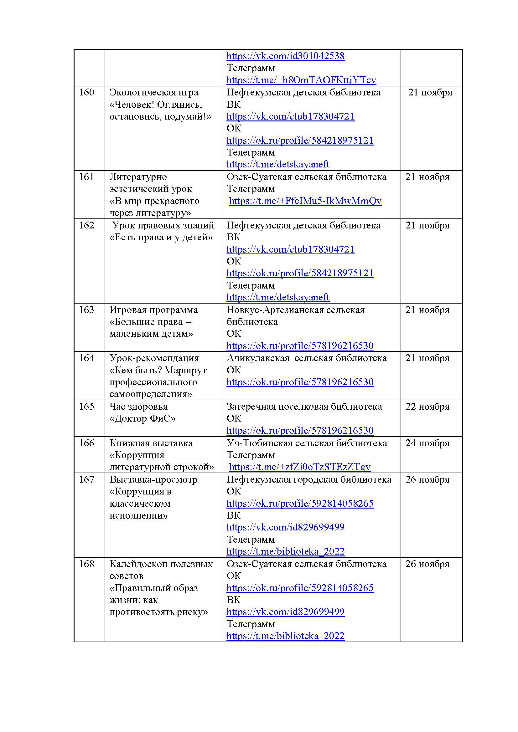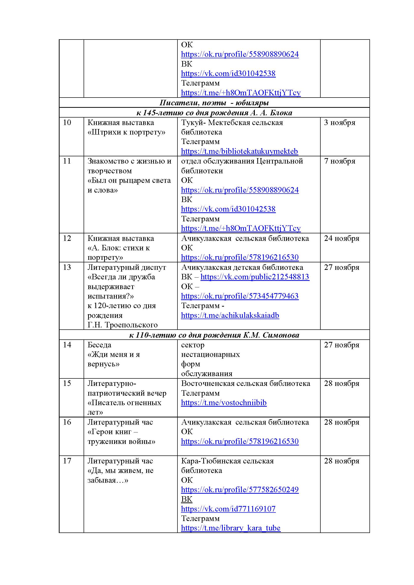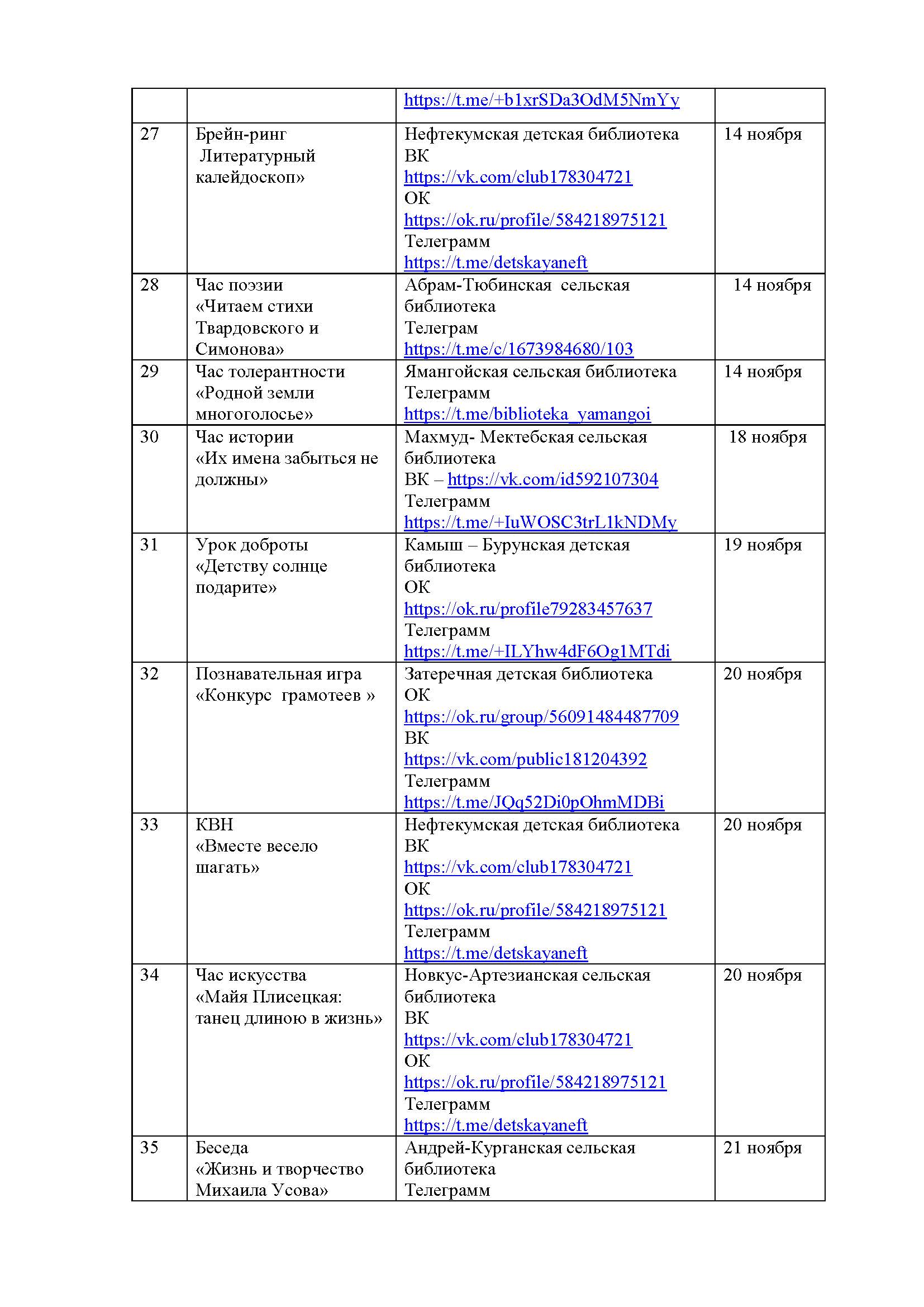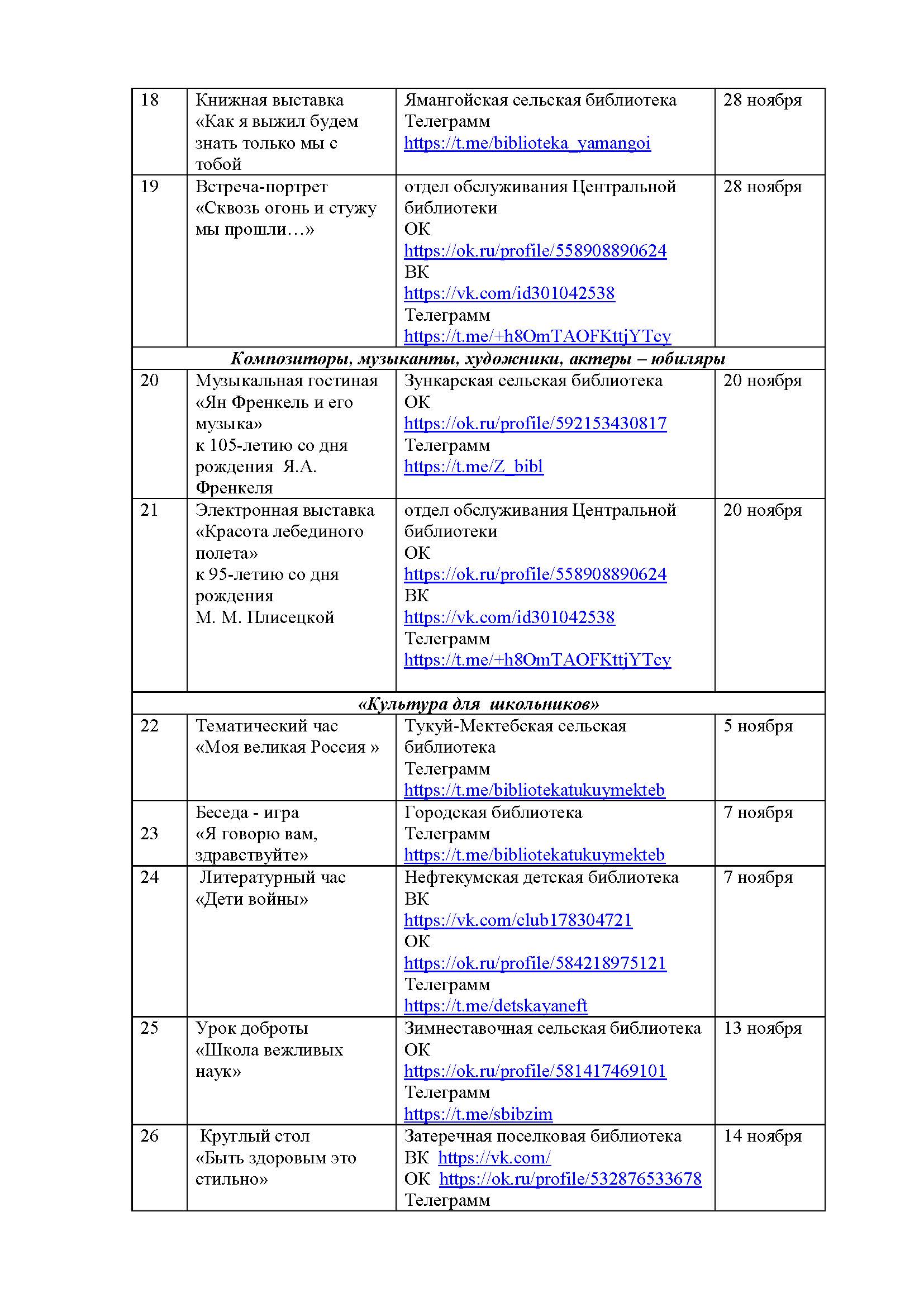 План мероприятий на ноябрь 2025 года библиотек МКУК ЦБС НМО СК