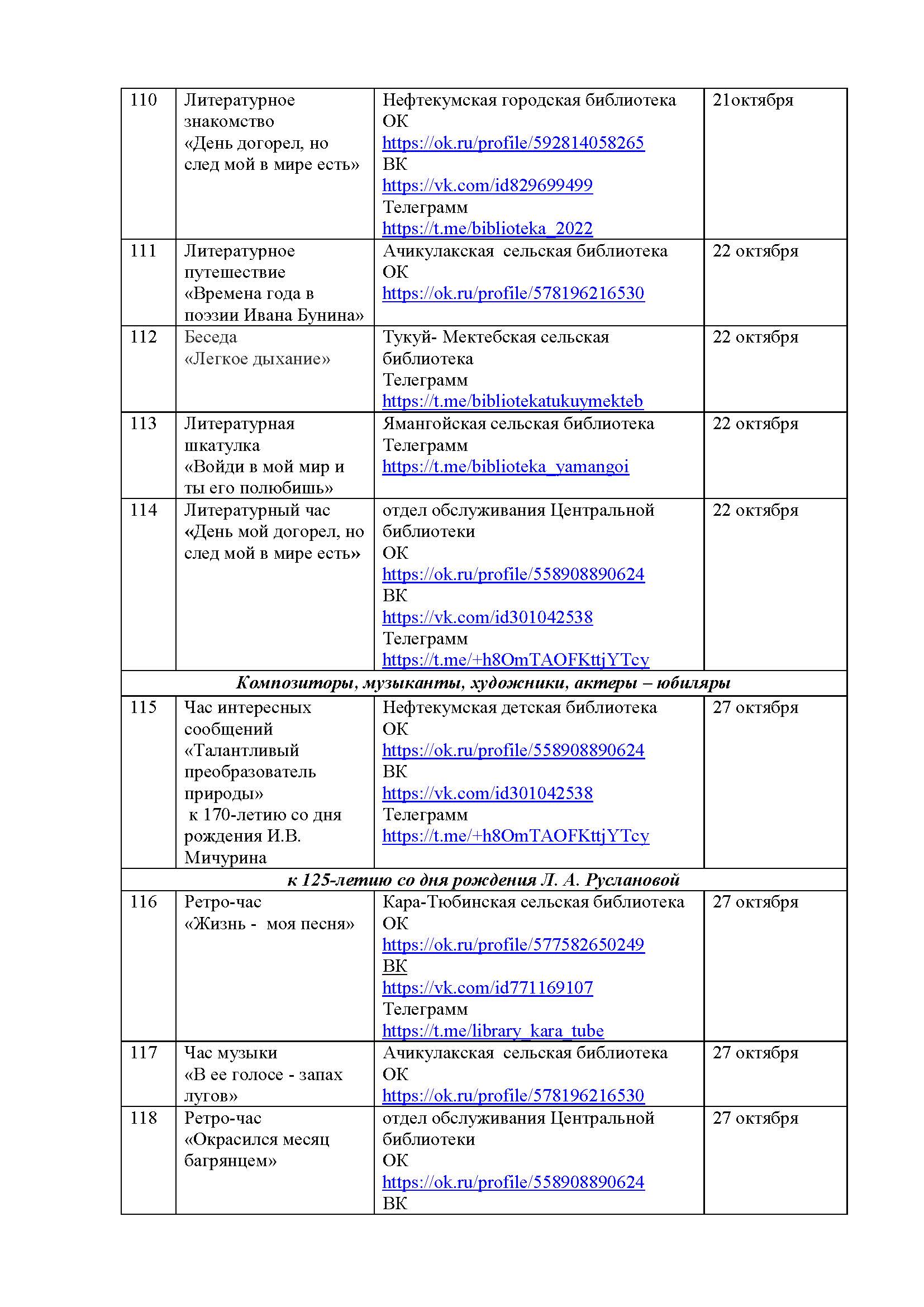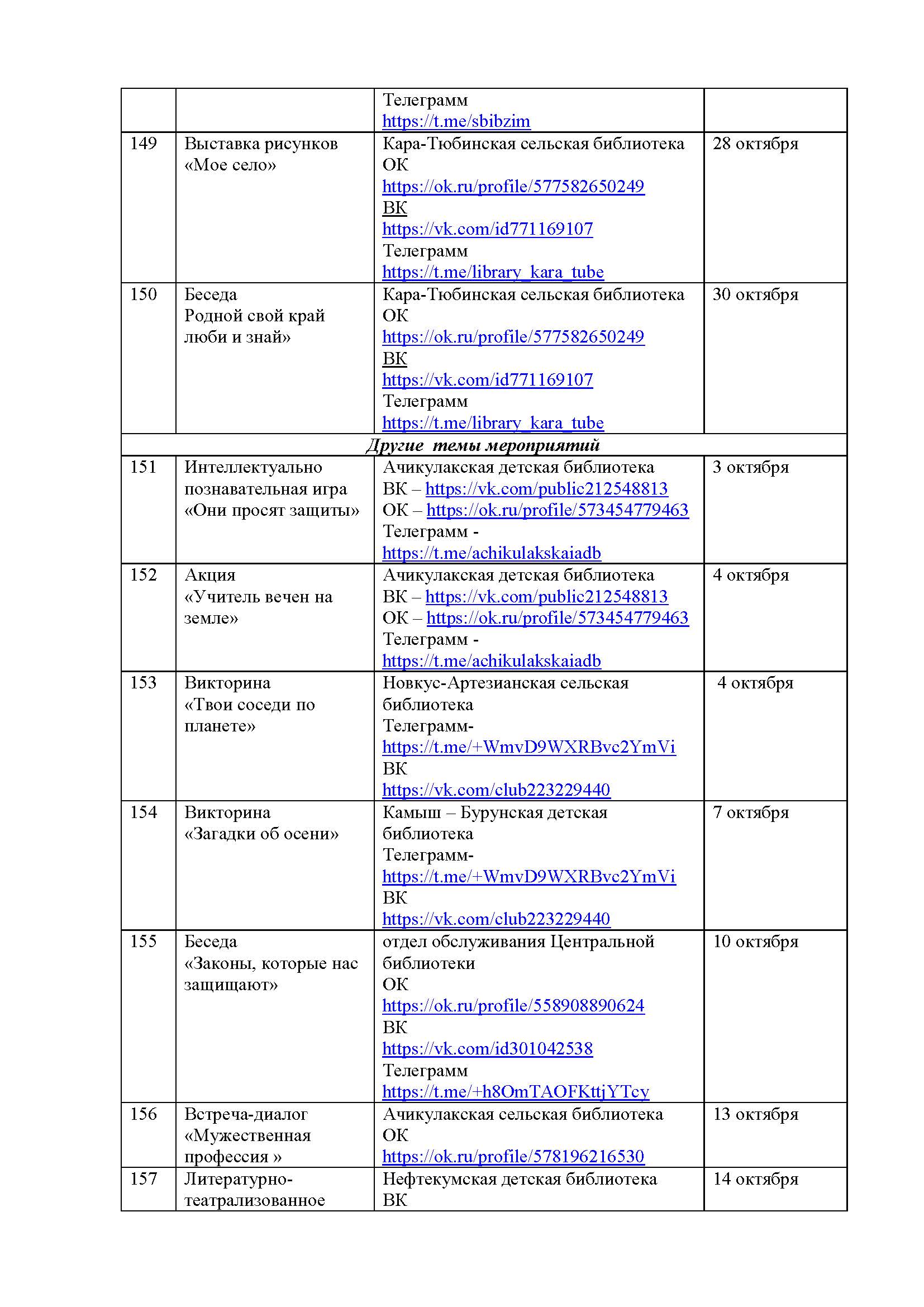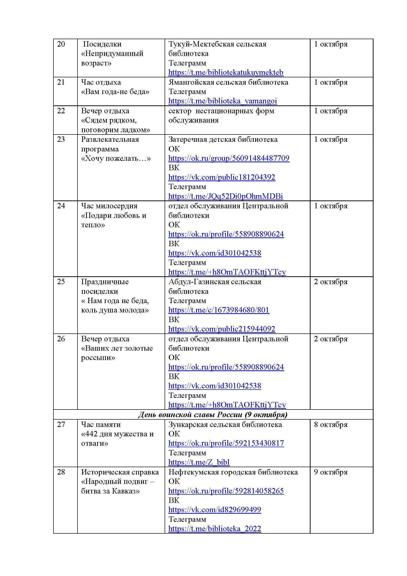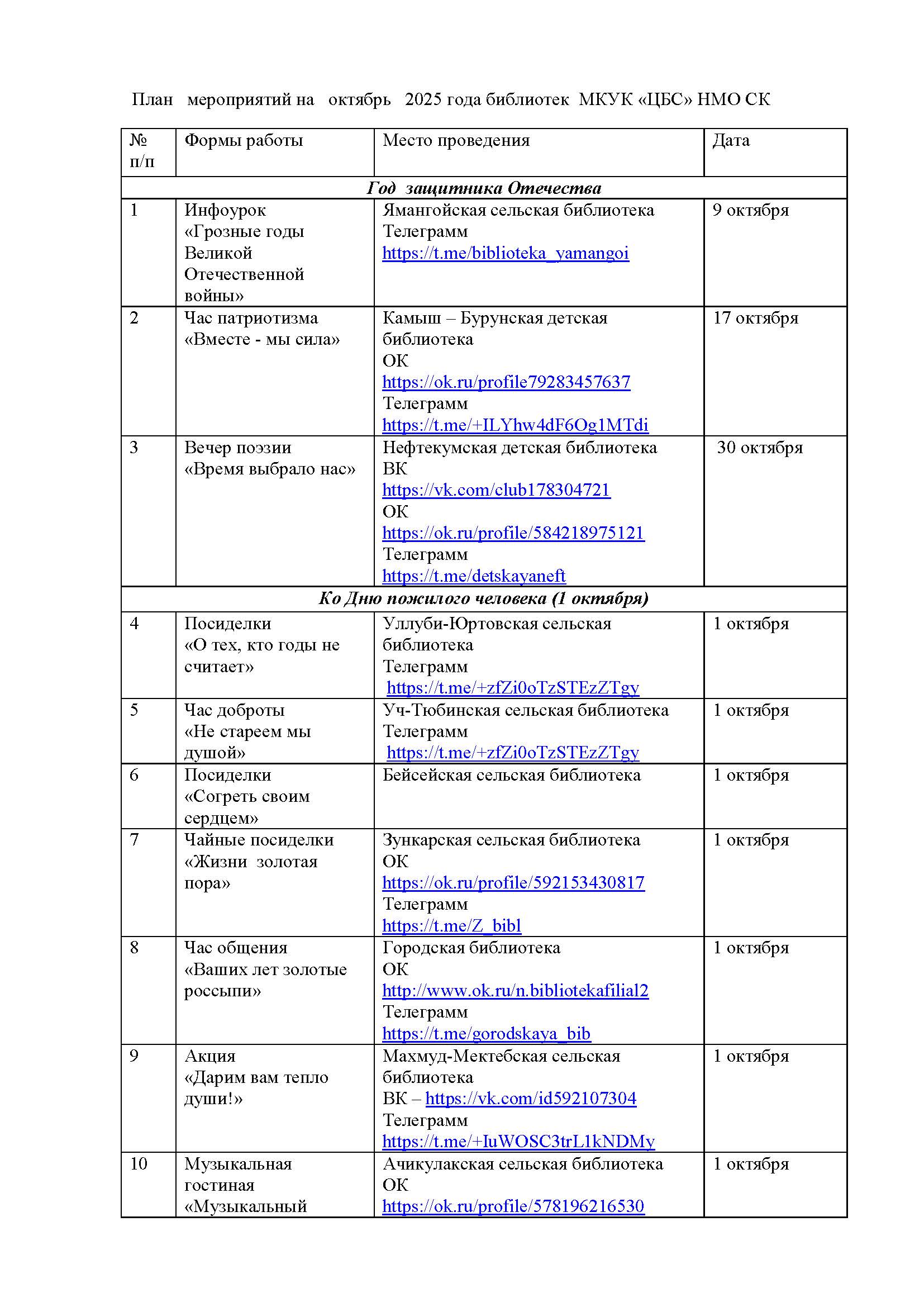 План мероприятий на октябрь 2025 года библиотек МКУК ЦБС НМО СК