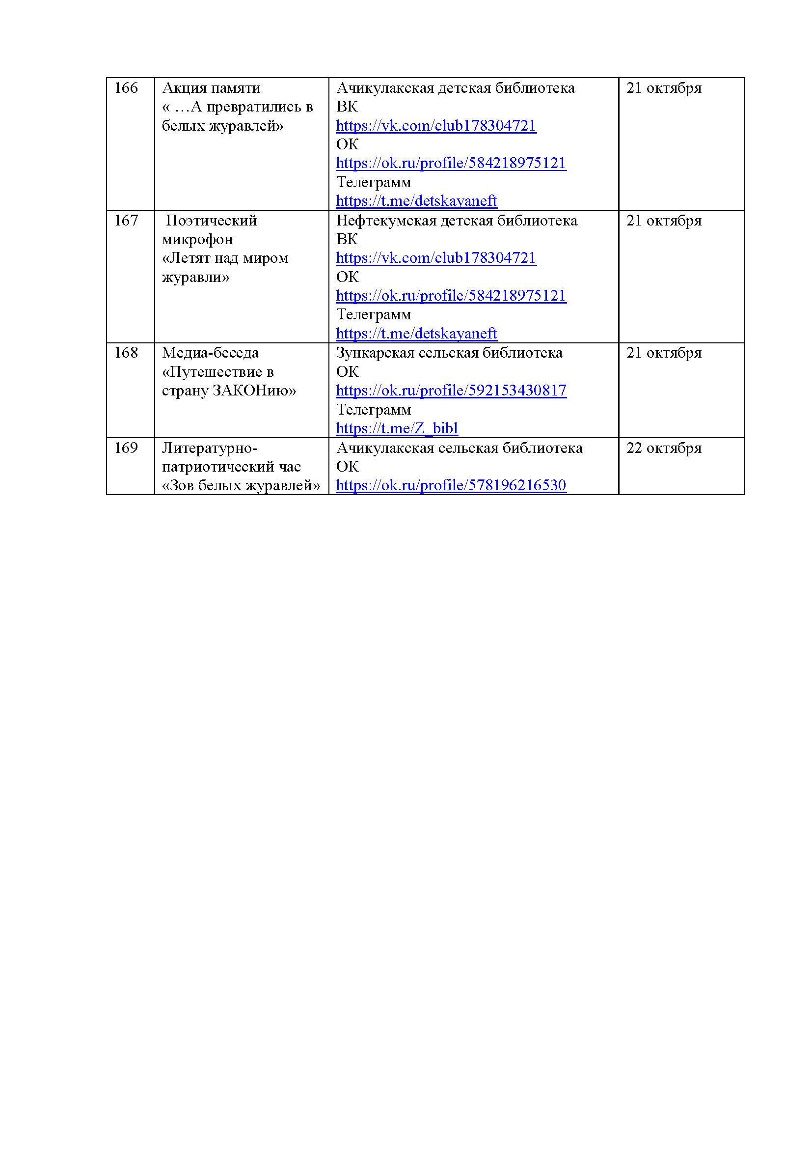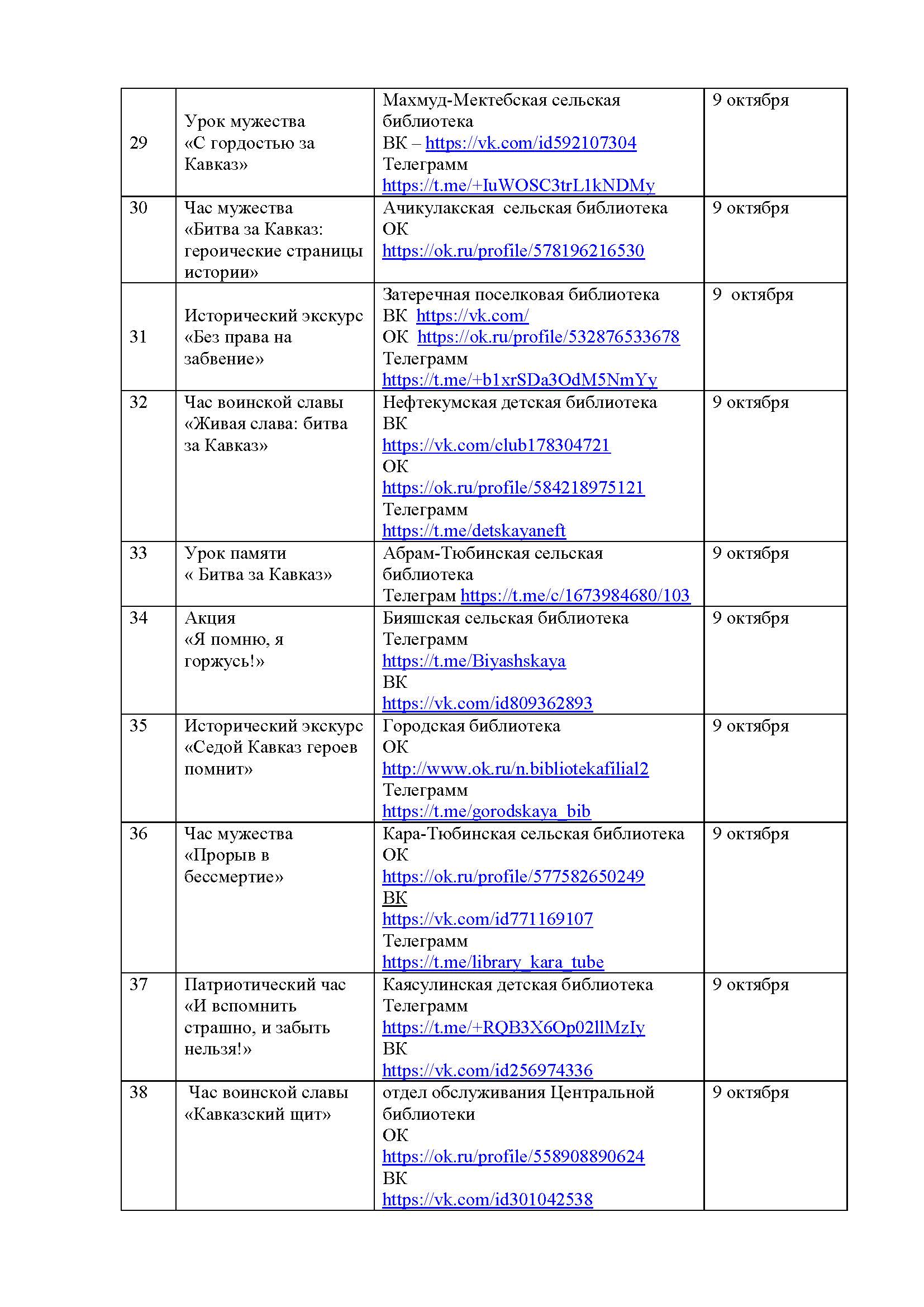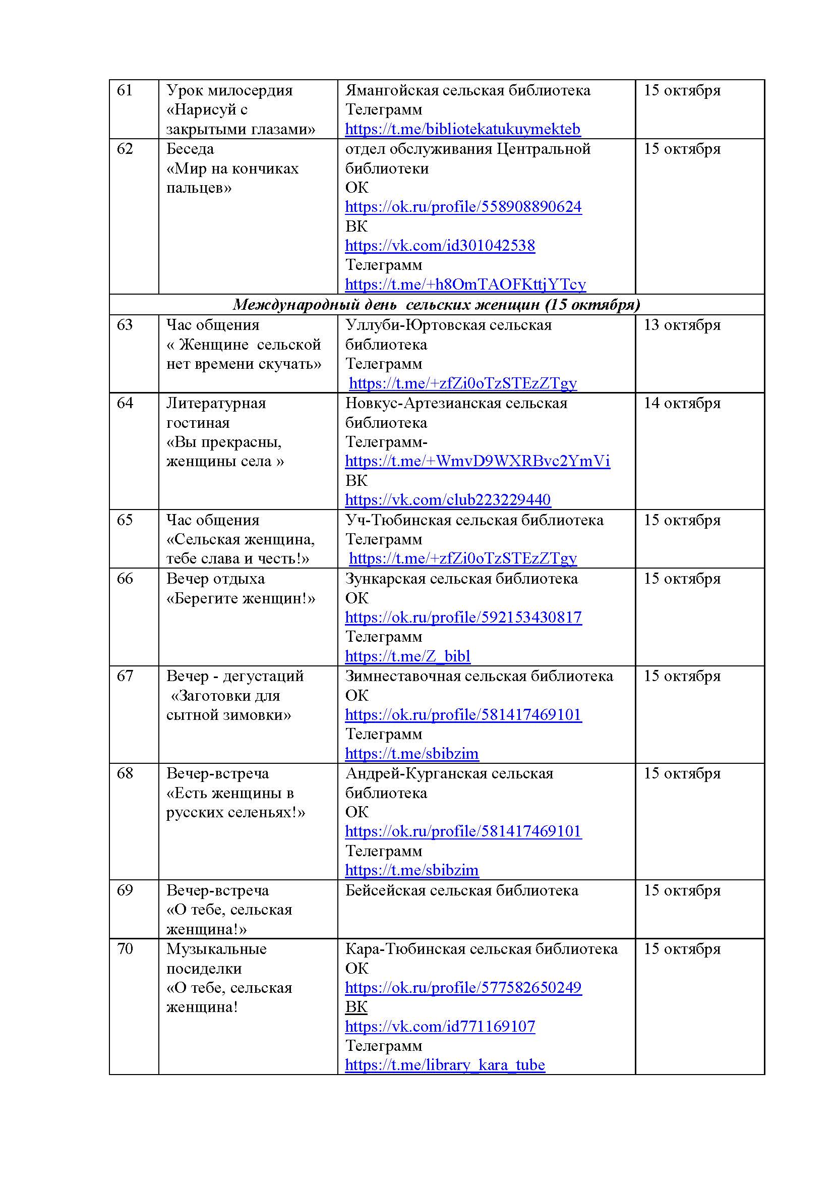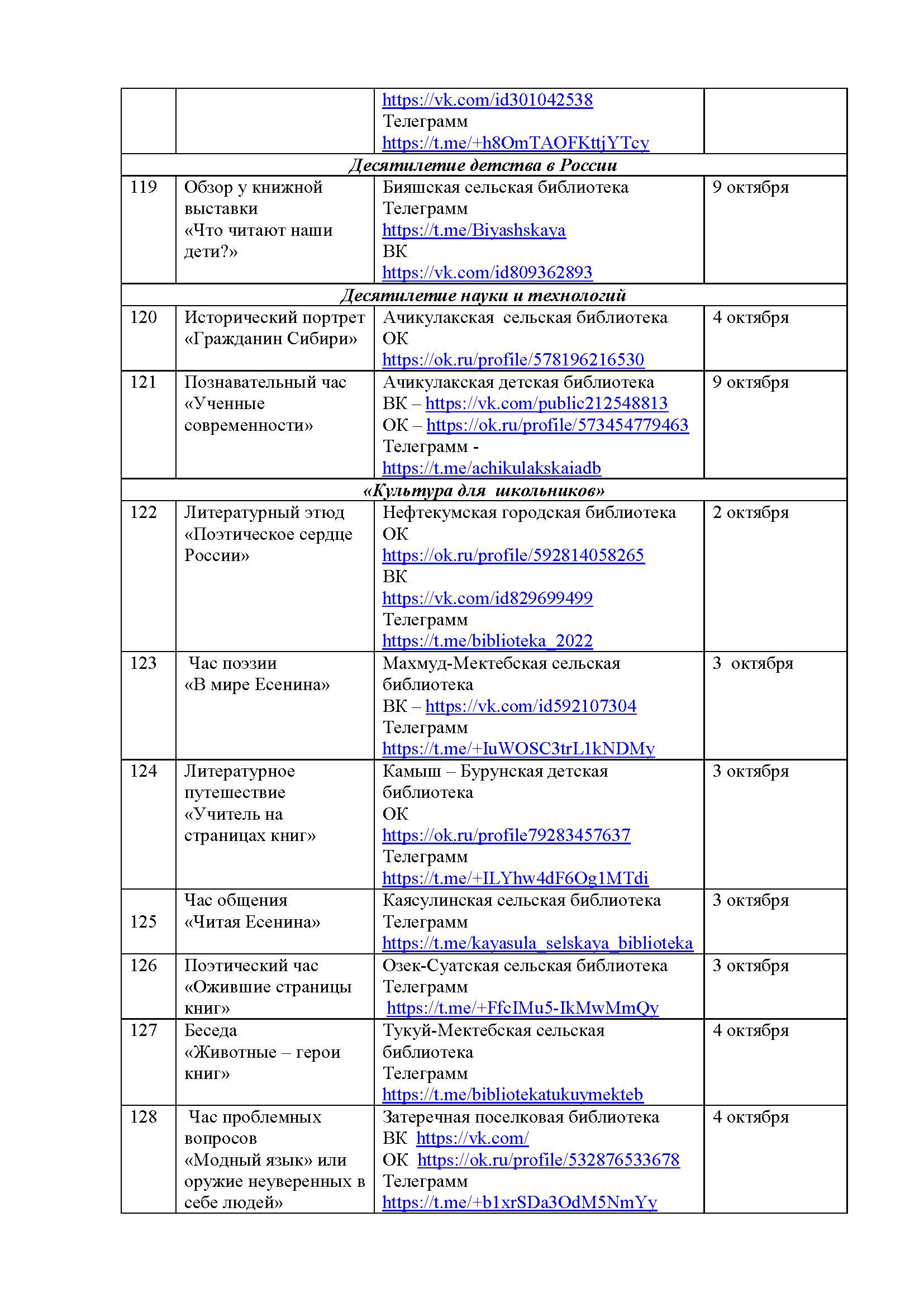 План мероприятий на октябрь 2025 года библиотек МКУК ЦБС НМО СК