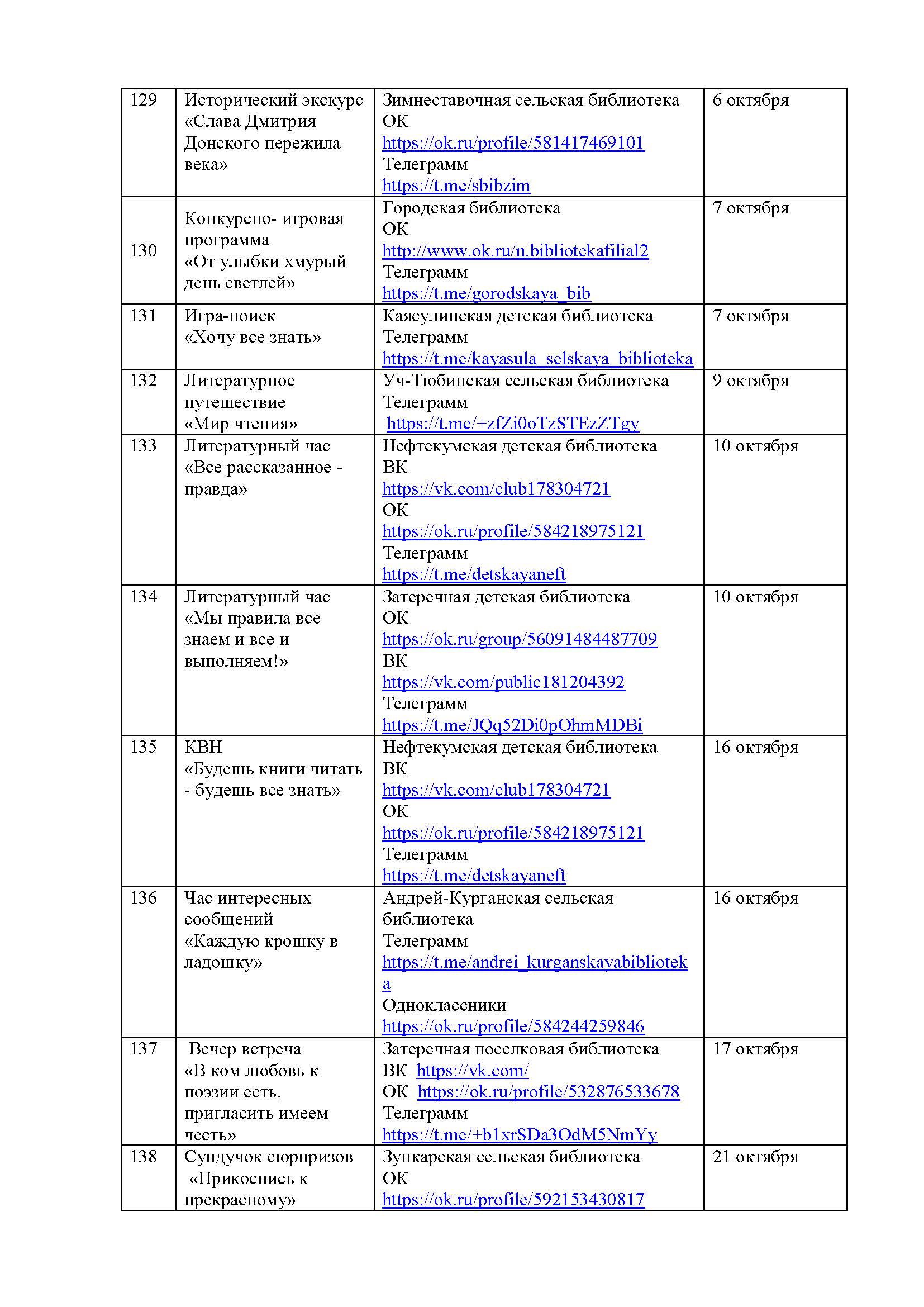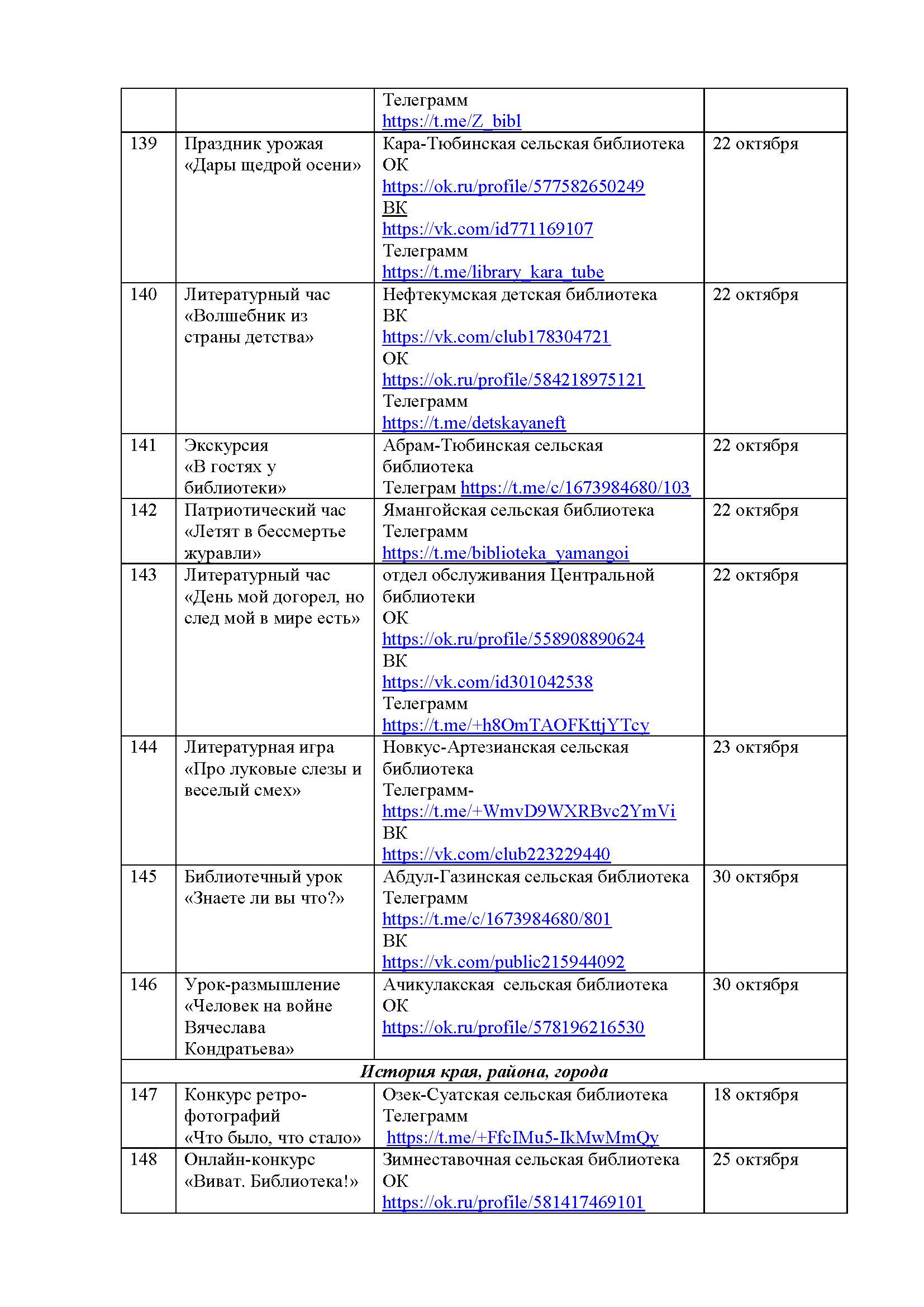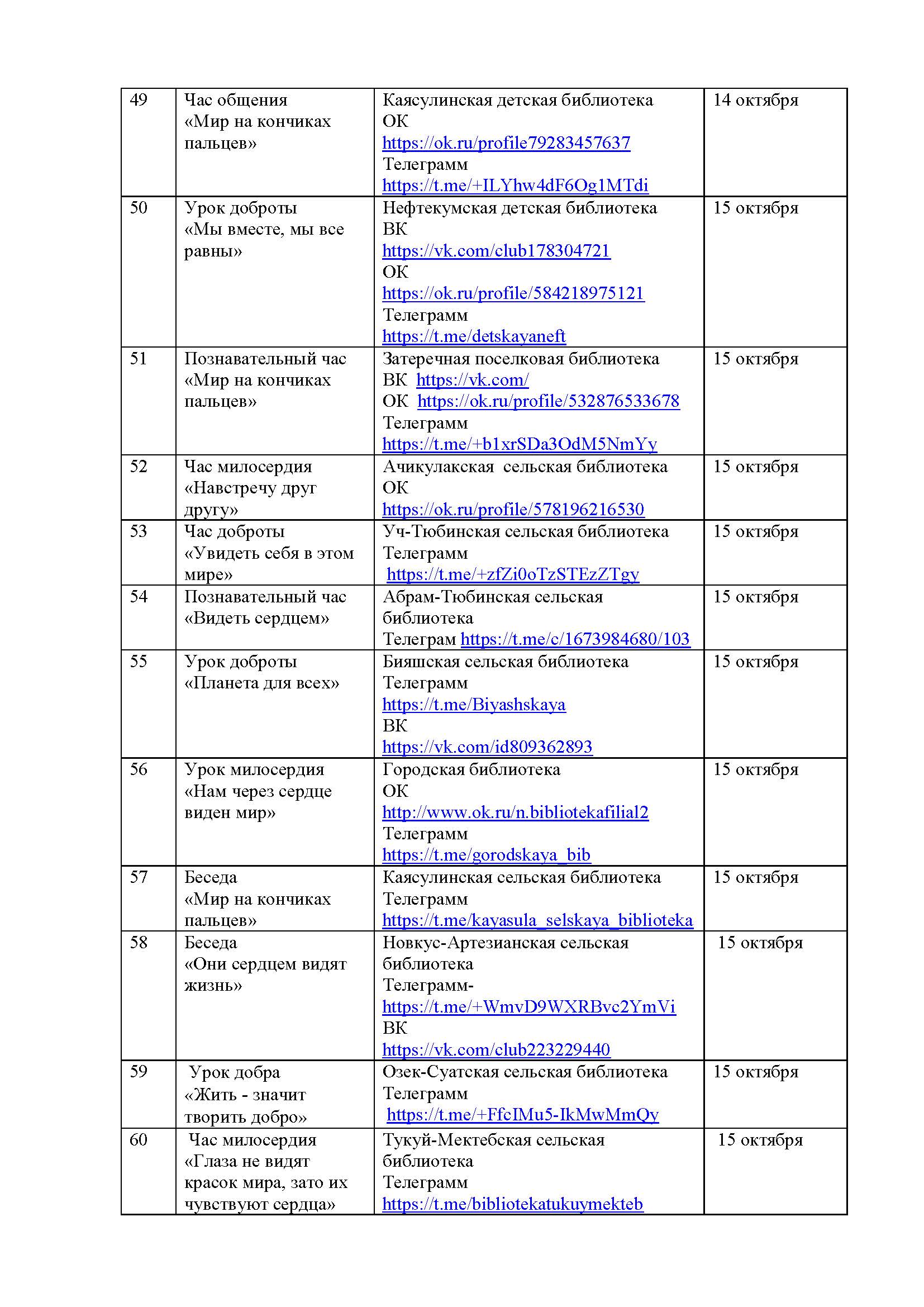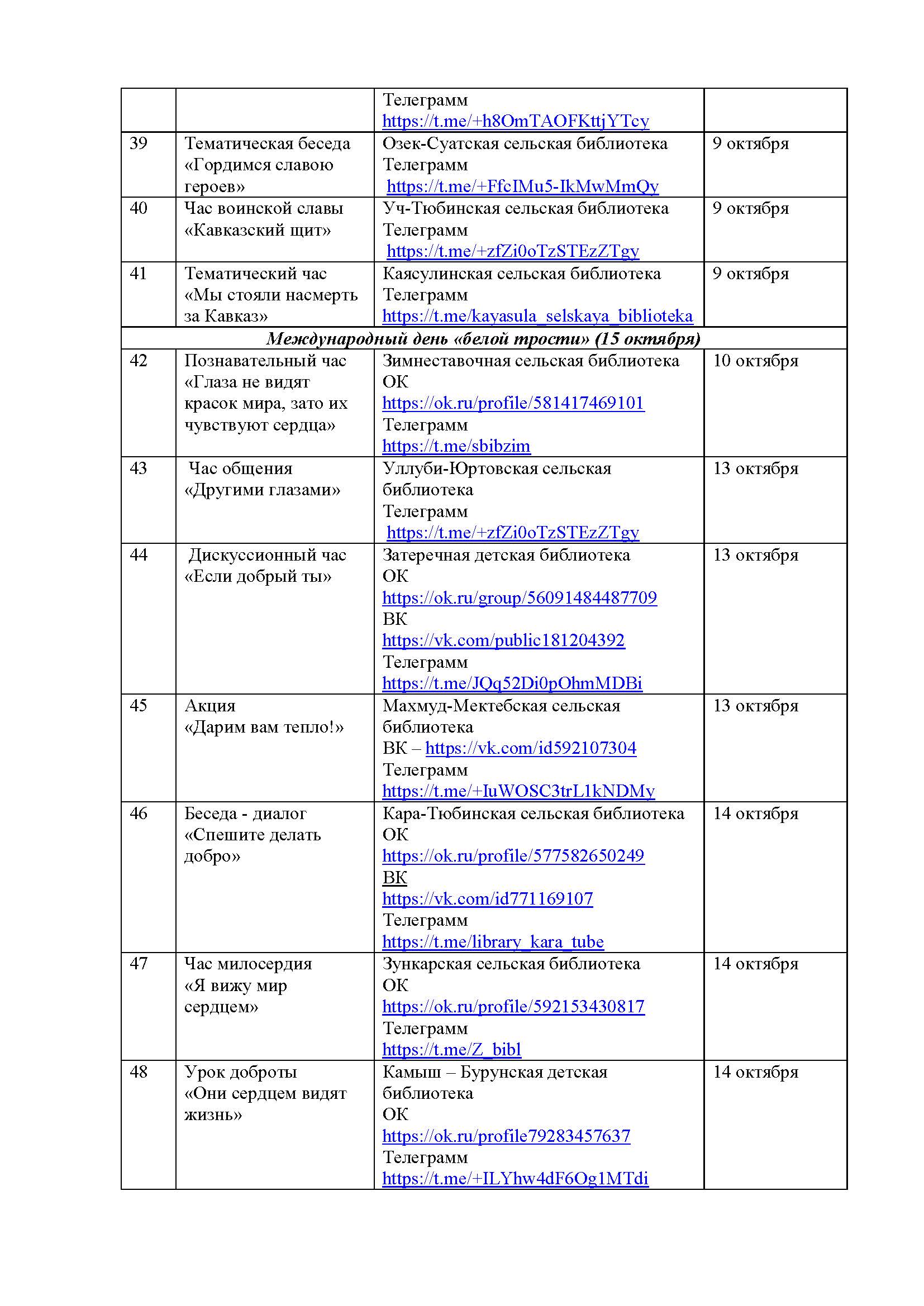 План мероприятий на октябрь 2025 года библиотек МКУК ЦБС НМО СК