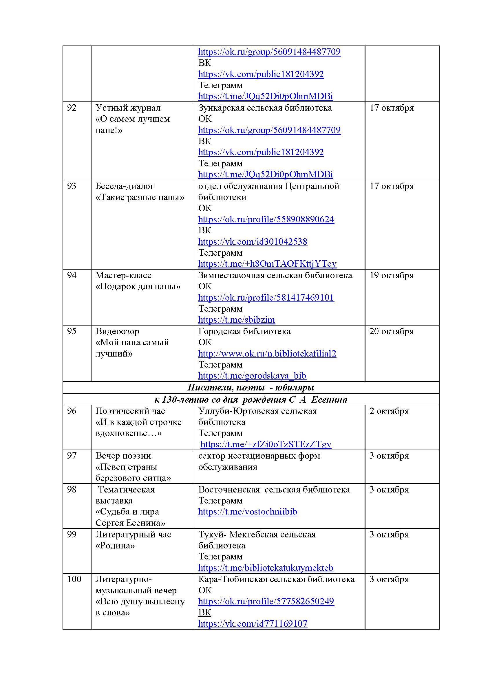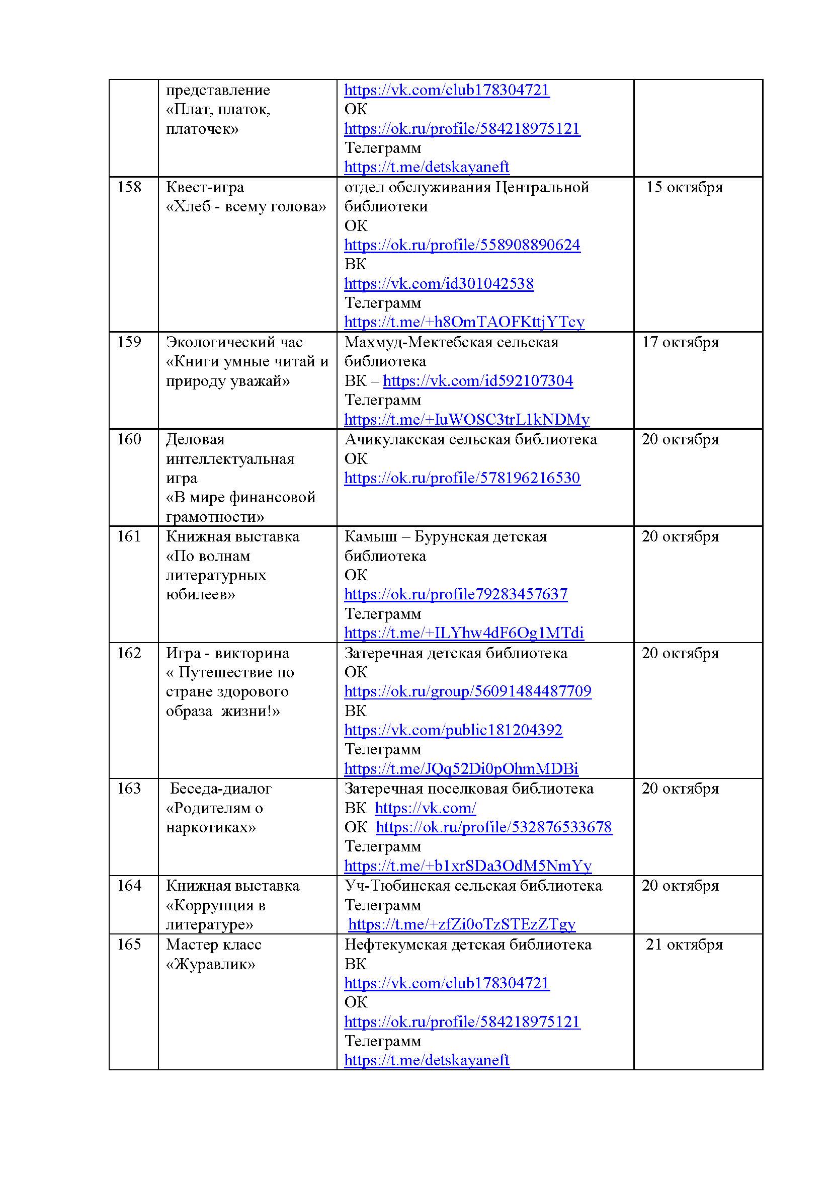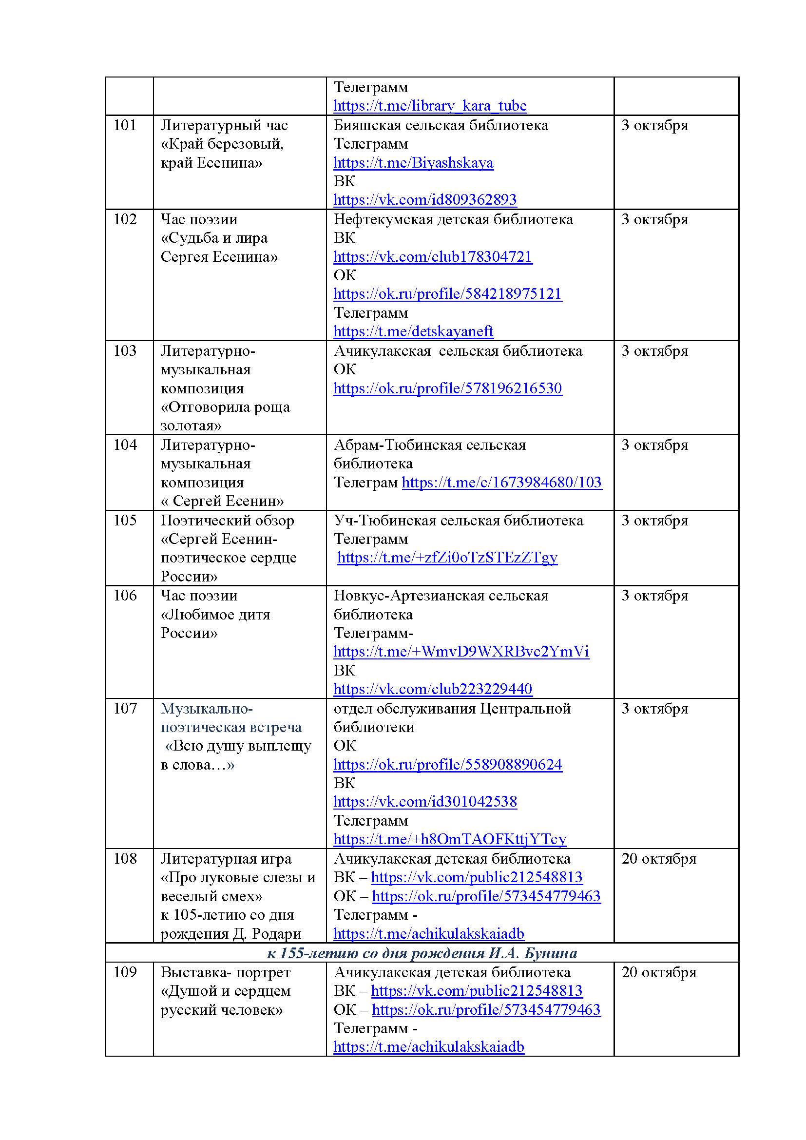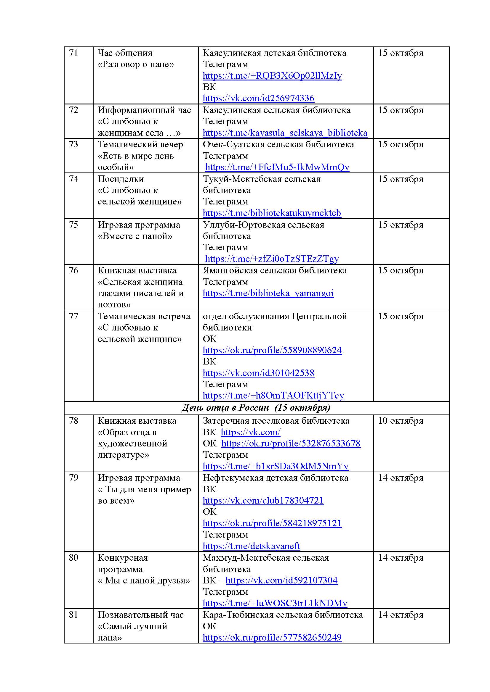 План мероприятий на октябрь 2025 года библиотек МКУК ЦБС НМО СК